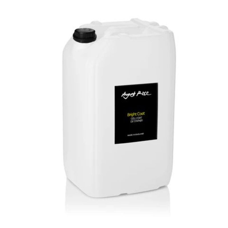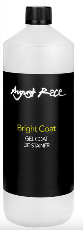 August Race Bright Coat is a high strength fast acting destainer for gel coats. Capable of removing yellowing, rust stains, water marks and mud-staining. Bright Coat effectively converts insoluble iron compounds into a soluble complex ion, quickly removing the visible discolouration on white gel-coats and consuming rust stains.