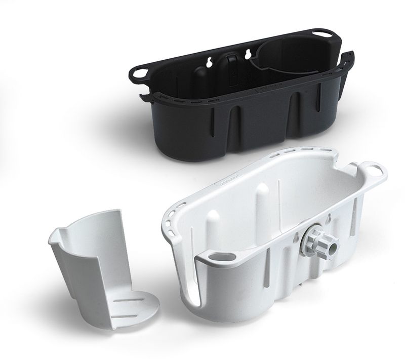 What do pliers, keys, fishing lures, cellphones, VHFs, binoculars, drink bottles, sunblock and mugs all have in common?The RAILBLAZA StowPod Storage Caddy will hold them all safe and secure.If you want storage on your push-pit, rail, console, pedestal, inflatable tube, gunwale, or almost any surface, then the StowPod is for you. This unique design incorporates a movable partition, transforming one end to a drink holder, or leaving the entire pod open to hold larger items.Base sold separately.