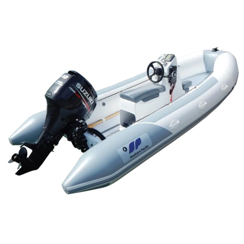 The Cormorant is the Southern Hemisphere’s most popular yacht club chase boat, but also an exhilarating sports option for skiing, diving and fishing, or as a light weight tender. With generously proportioned tubes and light weight aluminium hull, this RIB is fast, dry and very light. Flexibility in console and seating options meansthe Cormorant can be set up to serve any purpose; Jockey console for easy dismount, aft and central seating as a big boat tender, or simply open with a tiller steerto maximize space. Talk to Southern Pacific about custom options for the ultimate big boat and Superyacht tender. Thermally welded tubes coupled with tough kiwi aluminium hull, makes the Southern Pacific Cormorant the best built RIB on water.