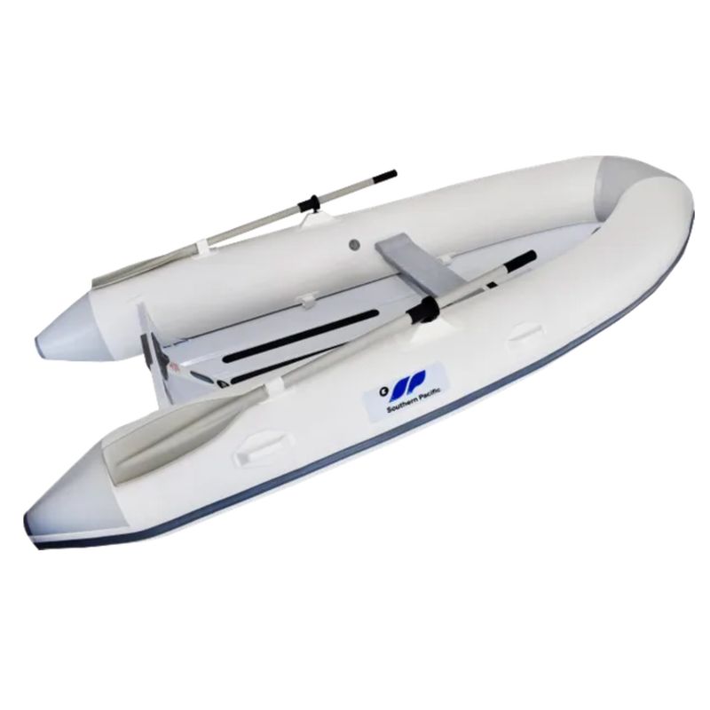 The Southern Pacific Shearwater is a rugged RIB designed for bigger payloads, with large diameter tubes and voluminous aluminium hull. Pressed strakes strengthen the aluminium hull as well as deflecting the wake for a drier ride. Large diameter tubes are built extra tough. Rubstrake runs from bow to stern making the Shearwater rugged and durable and three separate air chambers in the 280, 310 and 340 provide maximum safety. A centre transom support, keel capping, deck grip and davit lifting points are standard across all 4 sizes. Fuel storage space comes standard in the three larger models. The Shearwater is the ultimate small heavy duty RIB proudly made in New Zealand.