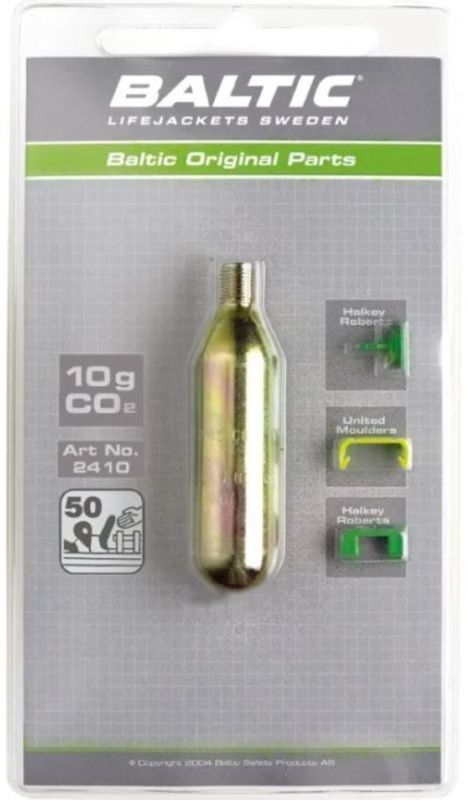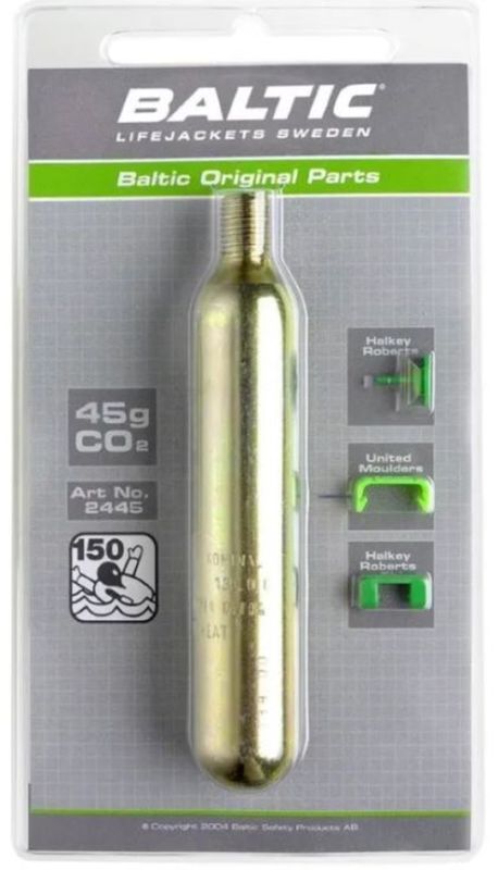 CO2 cartridge for Baltic inflatable life jackets with safety pins.
