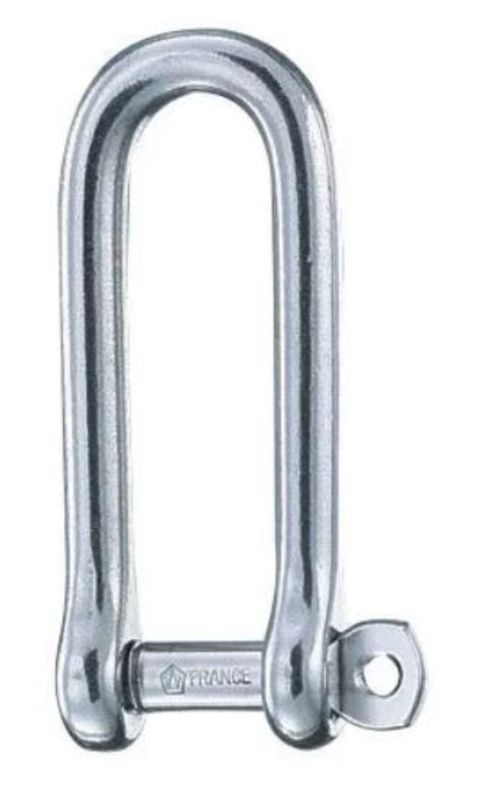 Captive pin long "D" shackle forged in grade 316L stainless steel